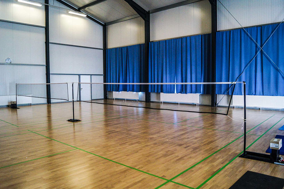In dieser Badmintonhalle mit 2 Spielfeldern haben wir sowohl für ausreichende und blendfreie Beleuchtung gesorgt, als auch sämtliche Elektroinstallationen im gesamten Gebäude durchgeführt.